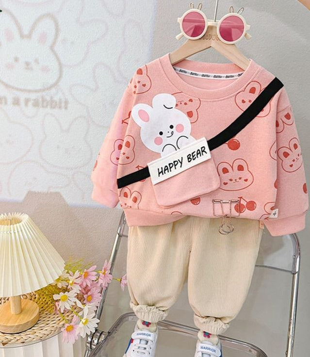 * Product Name: 001 Pink Happy Bear Print Sweatshirt With Off-White Trouser For Kids *...