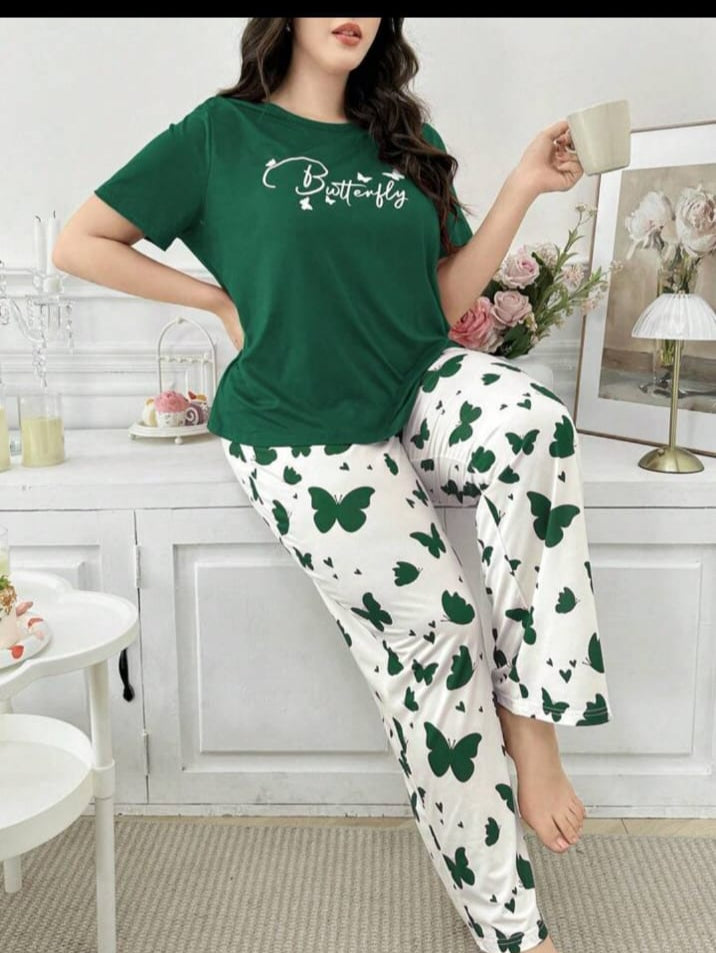 0000 Skin Butterfly Printed half Sleeves T-shirt With Printed Pajama Suit
