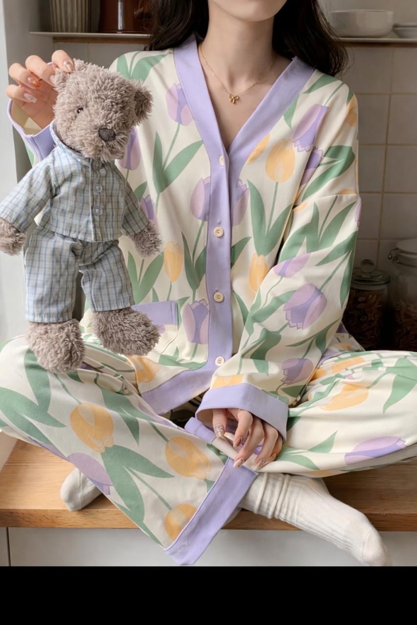0000 Offwhite Flowers Printed Front Button Style For Her
