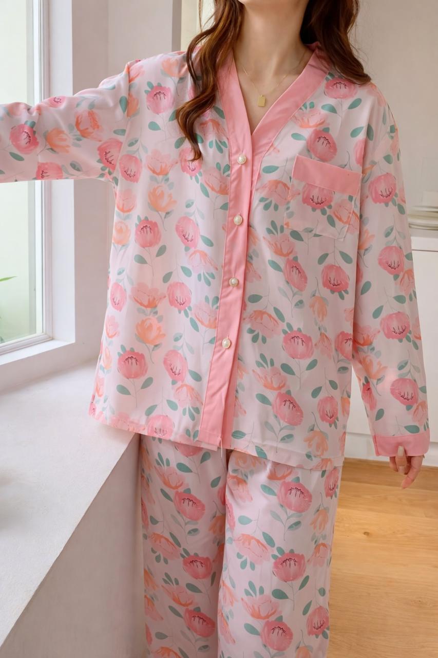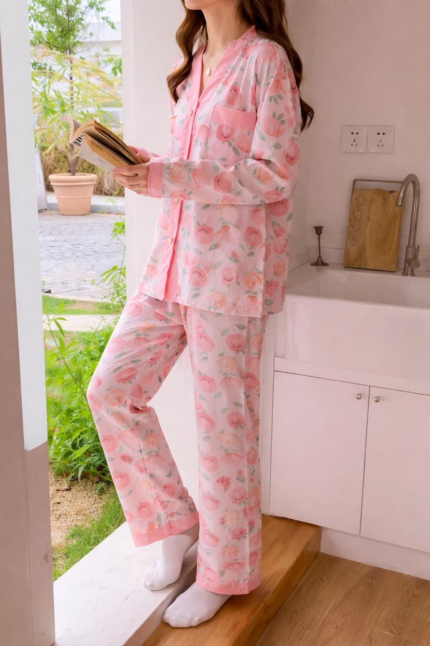 0000 Baby Pink Flowers Printed Front Button Style For Her