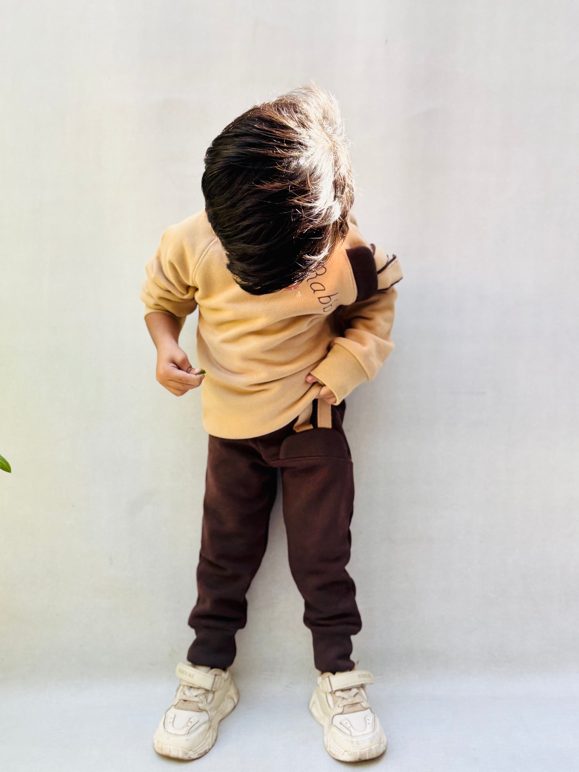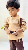 0000 Camel Brown Fleece-Lined Winter Outfit Cute Rabbit design Sweatshirt With Cute Rabbit lined Trouser Tracksuit For Kids