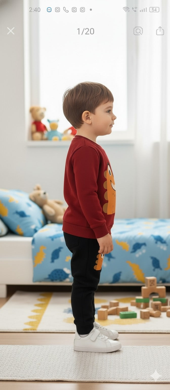 * Product Name : 0000 Mehroon Dragon Printed Sweatshirt With Black Dragon Printed Fleece Trouser Tracksuit For Kids