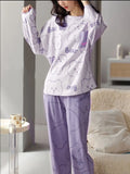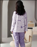 0000 Lilac All Over Bear Printed Full Sleeves T-shirt With Bear Printed Pajama Suit