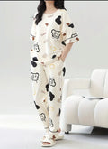 0000 Offwhite Monster Printed Half Sleeves T-shirt With Printed Pajama Suit